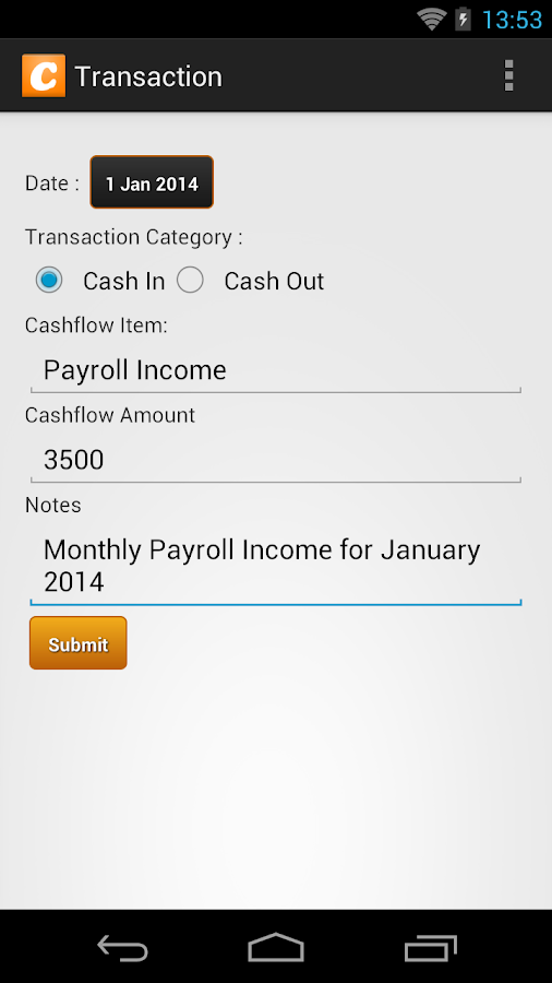 - Record Cash In and Cash Out money transaction
